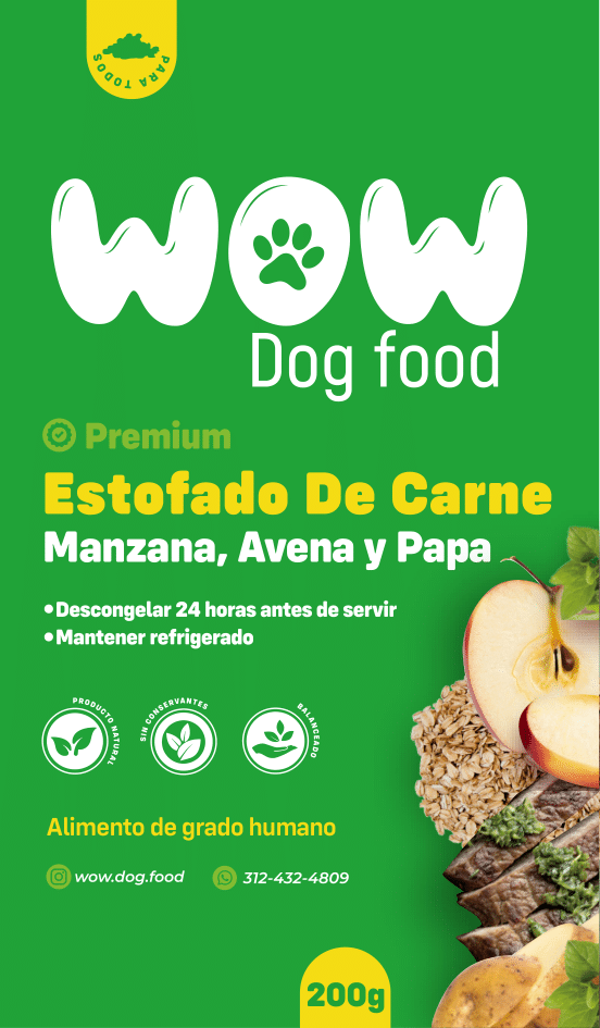 1.000 Gramos (5 packs de 200g) – Envase con sabor a Estofado de Carne, Manzana, Avena y Papa