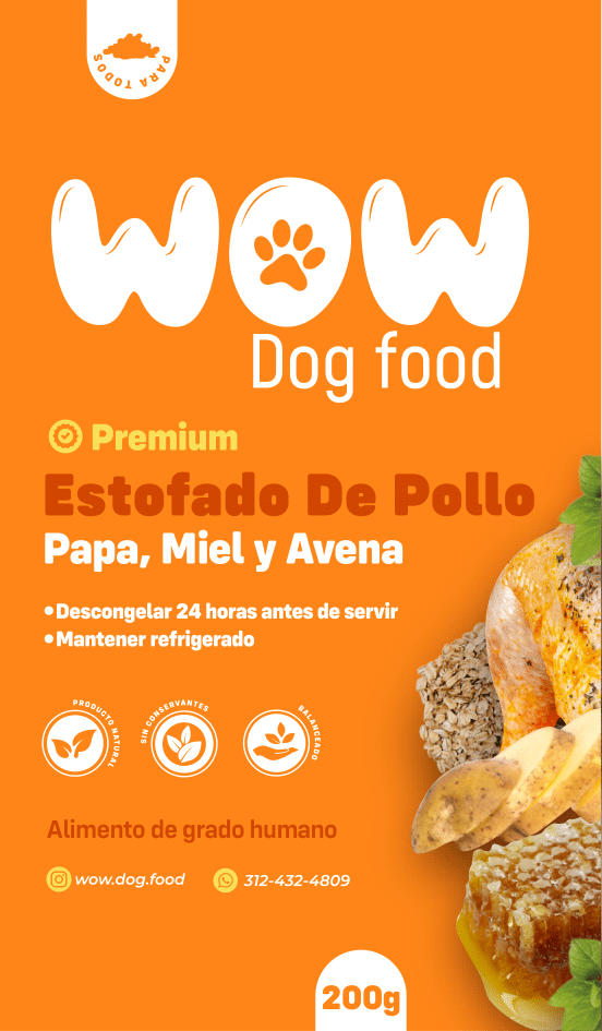 1.000 Gramos (5 packs de 200g) – Envase con sabor a Estofado de Pollo, Papa, Miel y Avena