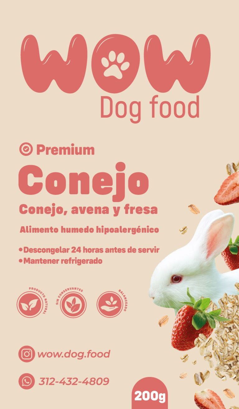 1.000 Gramos (5 packs de 200g) – Envase con sabor a Conejo, Avena y Fresa